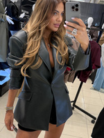 Marynarka damska skórzana - Ciemny khaki