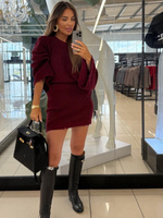 Sweterkowy komplet spódnica i sweter - Śliwka